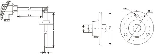 直角彎頭熱電偶適用于生產現場存在高溫和有害氣體對熱電偶接線盒有影響,或不宜直接水平及垂直安裝場合。
